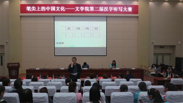 4月21日下午,yl9193永利集团“笔尖上的中国文化”——第二届汉字听写大赛在综合楼学术报告厅隆重举行,校党委宣传部部长赵学森、校团委书记孙亮、教务处副处长胡建军、yl9193永利集团督导黄晓鹤以及yl9193永利集团师生代表200余人观看了比赛。本场比赛是学院经过初选、复赛等环节后举办的汉字听写大赛决赛,经过初选、复赛,共有5个参赛队进入决赛。