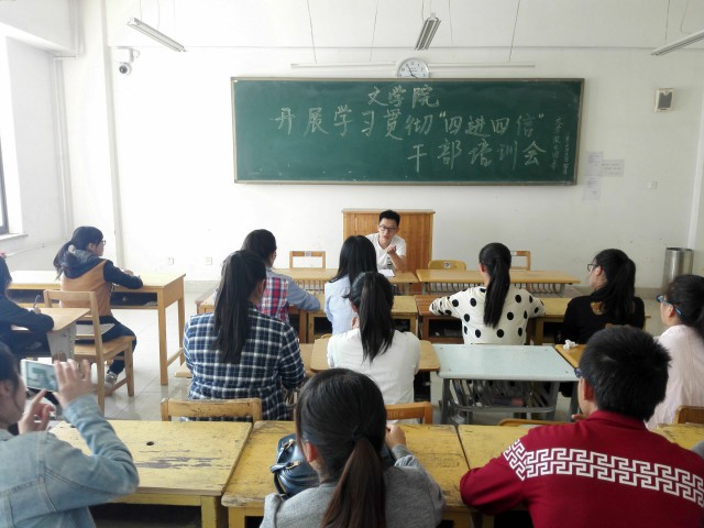 最后,孟老师要求全体学生会干部一要带头学习近平总书记系列重要讲话精神“四进四信”,认真领会精神,提高认识,学以致用;二要成为讲话精神的积极传播者和坚定践行者,起到表率作用,带动身边的同学共同学习,将讲话精神贯穿融入到今后的学习活动当中;三要把学习和学生会工作结合起来,完善工作机制,做好学生会组织管理和活动的开展。