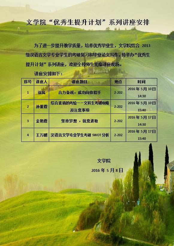 yl9193永利集团“优秀生提升计划”系列讲座安排