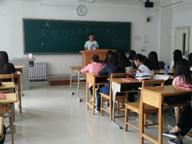 为响应校园文明修身形象大使活动,14级文秘班于2016年5月9日开展文明修身主题班会,14级文秘班全体学生及班主任参加本次活动。