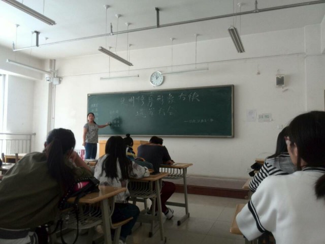 13级汉语言一班全体学生在2016年5月9日于三号楼506教室举行了文明修身形象大使选举主题班会。