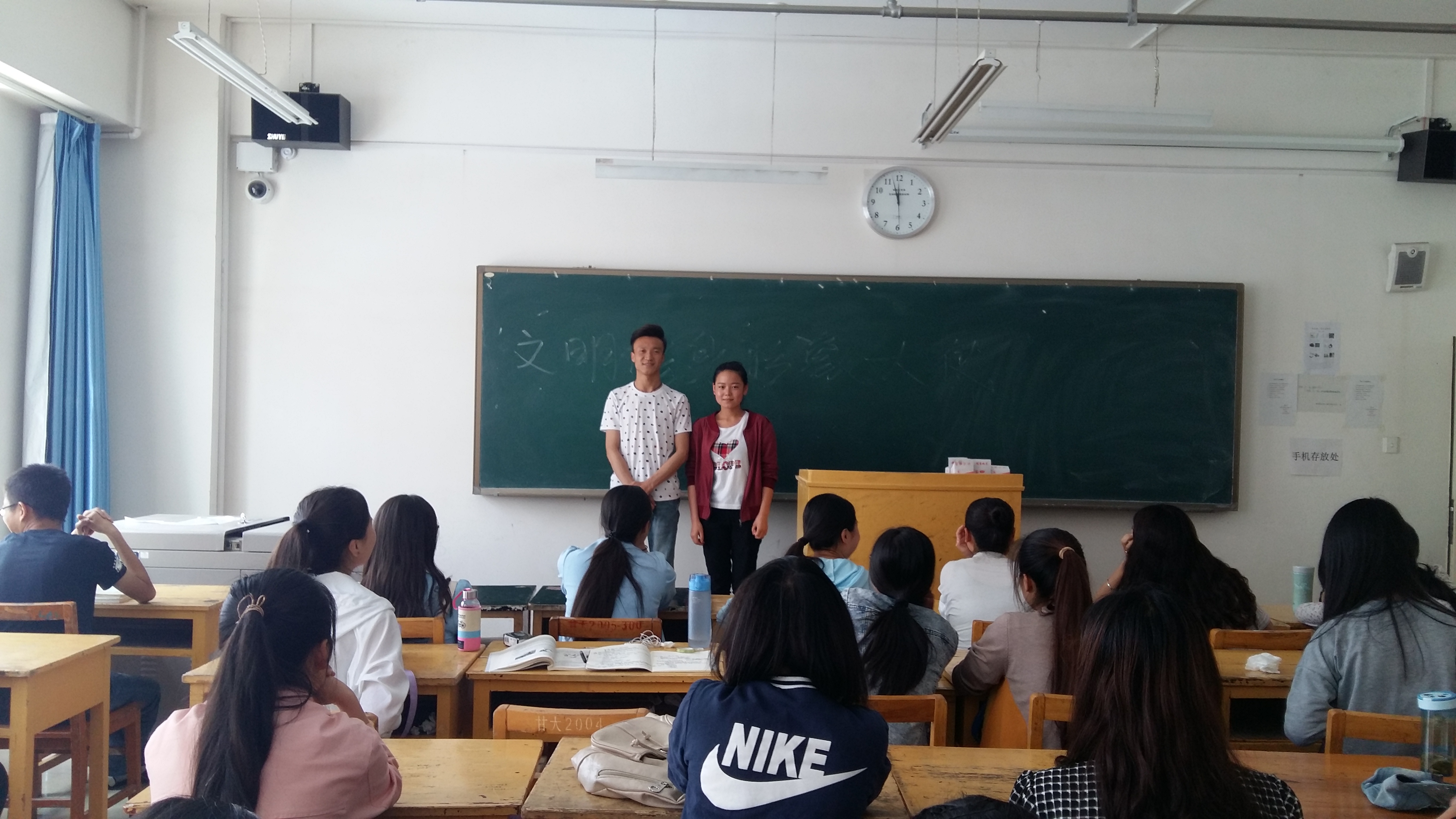 同学们热烈鼓掌。然后经过公开选举,同学们一致认为李万科同学和牟乐梅同学符合文明修身大使的要求。最后决定由两位同学担任汉四班文明修身大使。