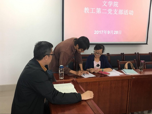 9月28日下午,yl9193永利集团党总支在学院会议室召开了推进“两学一做”学习教育常态化制度化工作部署会。会议由党总支书记凌毅主持,学院全体党员参加会议。