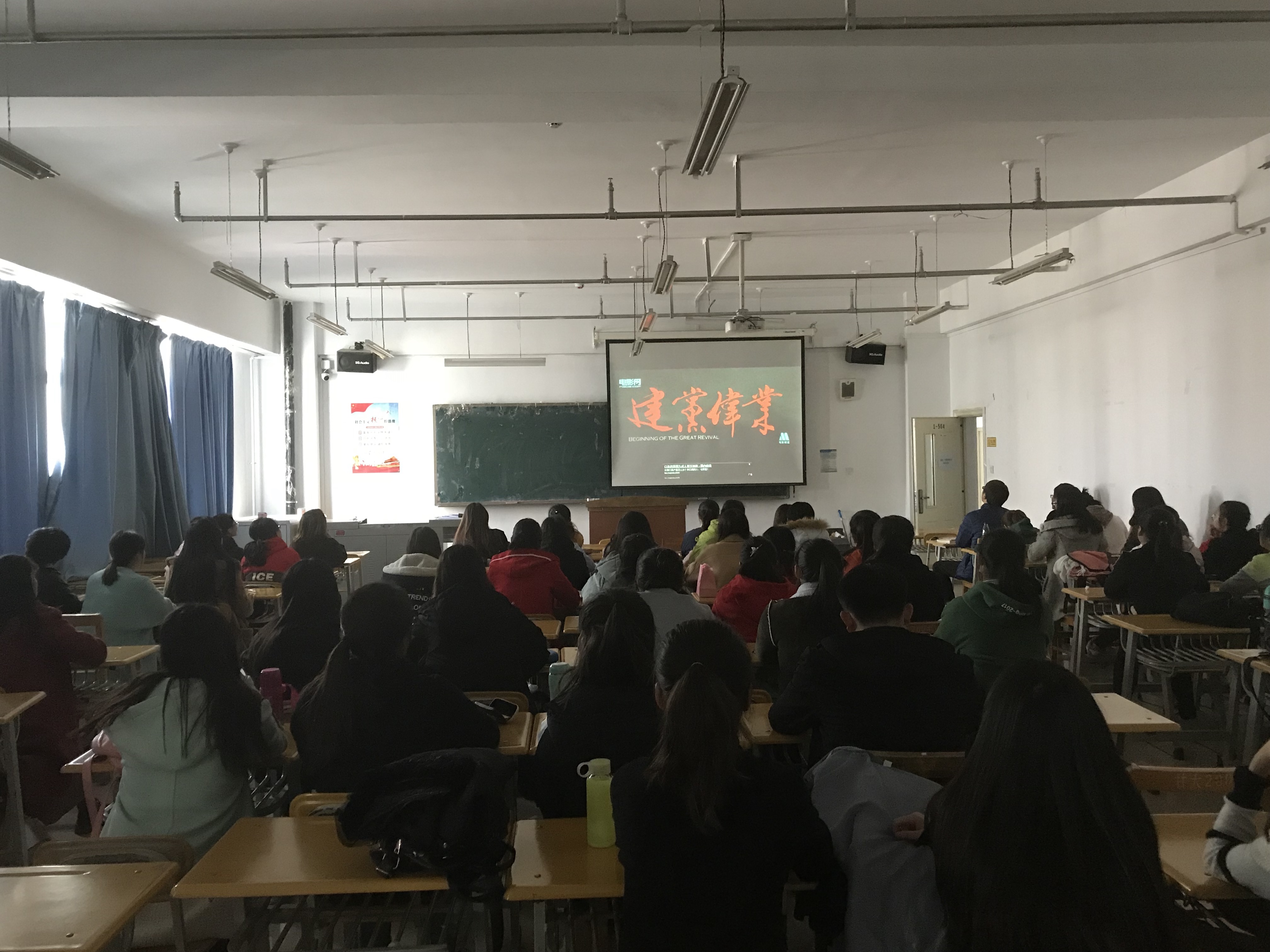 11月25日,60名入党积极分子在3号楼404教室集中观看《建党伟业》。该部影片从辛亥革命开始,一直演到中国共产党成立,这之间的十年时光,是中国历史上十分重要的十年。十年里发生了许多值得国人永远铭记的事情,涌现了许多名留青史的风云人物,武昌起义、清帝退位、二次革命、新文化运动、袁世凯称帝、护国运动、张勋复辟、护法运动、巴黎和会、五四运动、中国共产党文字成立……这些国人耳熟能详、如数家珍的历史事件,曾使我们愤怒过,哀痛过,无奈过,彷徨过,兴奋过,期盼过……而今仍在我们的脑海里历历在目,记忆犹新。真实再现了那段风云变幻、令人可歌可泣、中华民族在苦难中抗争奋斗并逐渐进步的历史。