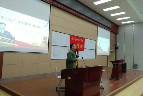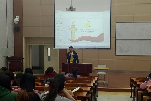 在课程中,凌书记介绍了十九大召开以来我院师生的学习和宣讲情况,我院一直严格践行十九大进课堂、进教材、进头脑的要求,号召师生认真学习十九大精神。