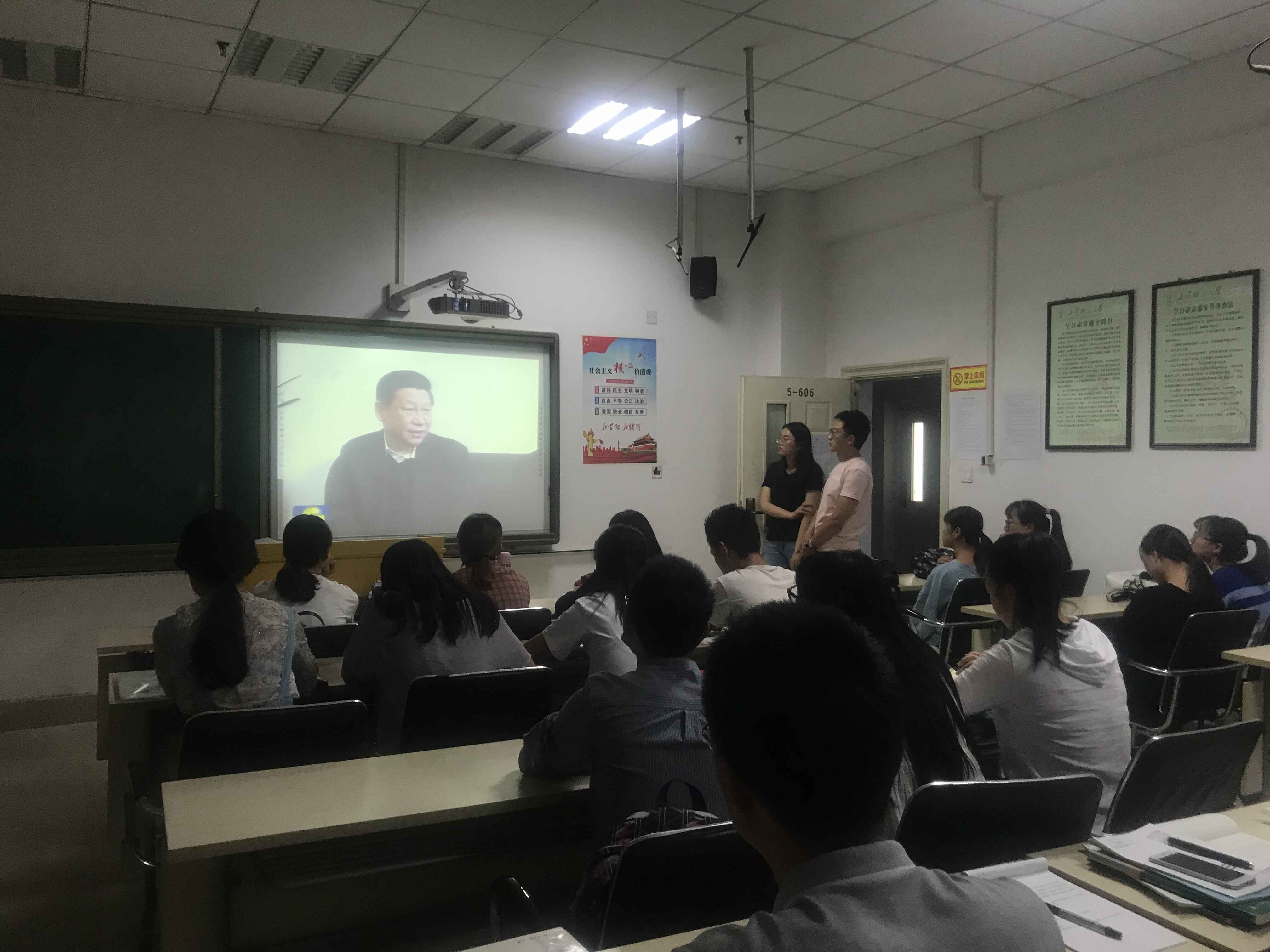会上,集中观看了习近平总书记在北京大学考察的专题视频,全文学习了习近平总书记《在北京大学师生座谈会上的讲话》。习总书记着眼培养社会主义建设者和接班人根本任务,深刻论述了“培养什么人”“怎样培养人”“青年如何健康成长”等重大问题,对当代青年提出了爱国、励志、求真、力行的明确要求。他强调,大学是立德树人、培养人才的地方,是青年人学习知识、增长才干、放飞梦想的地方。广大青年要把马克思主义信仰作为鲜亮底色,以立德为基础,争做时代楷模。