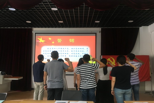 活动中全体党员首先唱响《国际歌》,每位党员举起右手在党旗下庄严宣誓,重温了入党誓词。随后,大家集体认真学习了习近平在纪念马克思诞辰200周年大会上的讲话。