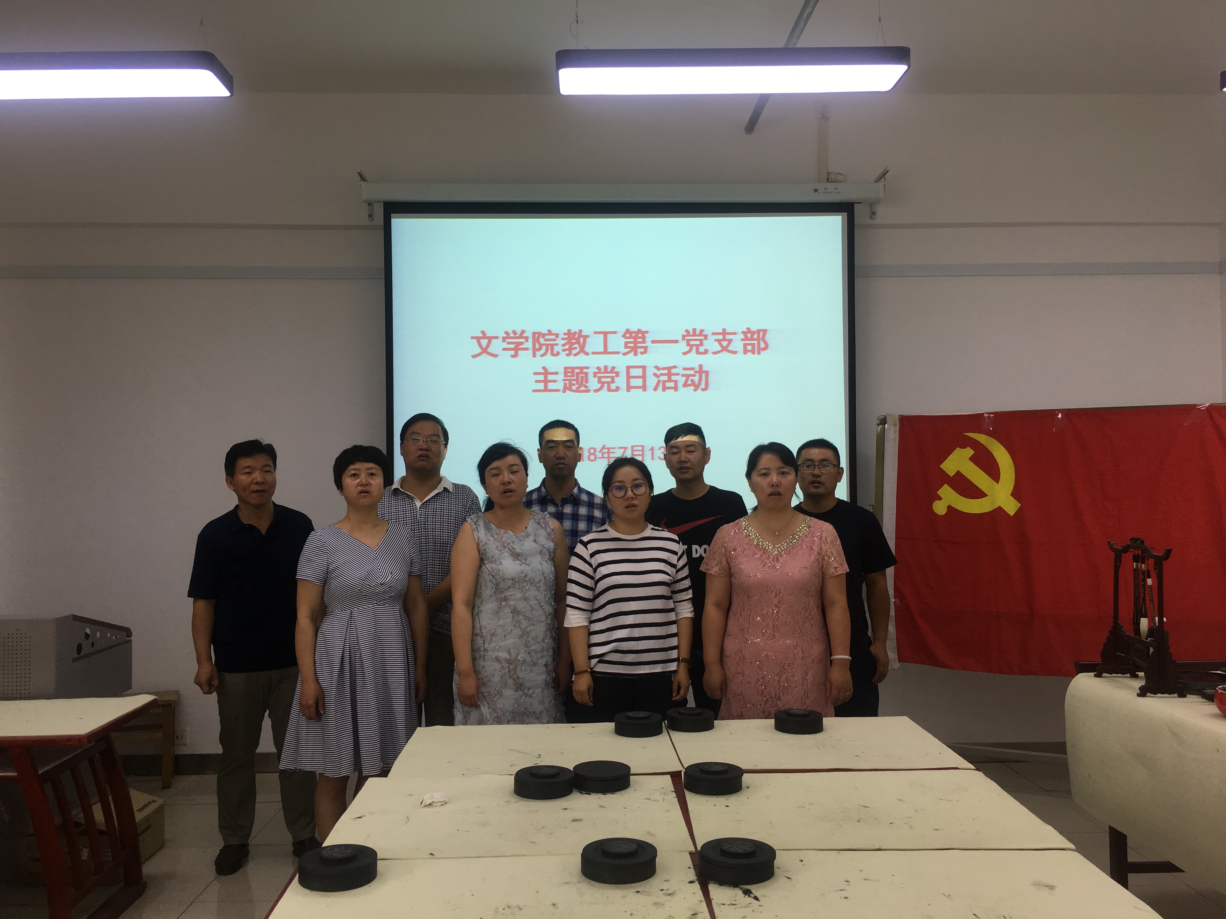 为深入学习贯彻习近平新时代中国特色社会主义思想和党的十九大精神,纪念中国共产党成立97周年,根据学校的要求和学院党总支的安排部署,我院教工第一党支部于7月13日在学院书法教室组织召开了庆祝建党97周年主题党日活动。活动由支部书记王德峰主持。