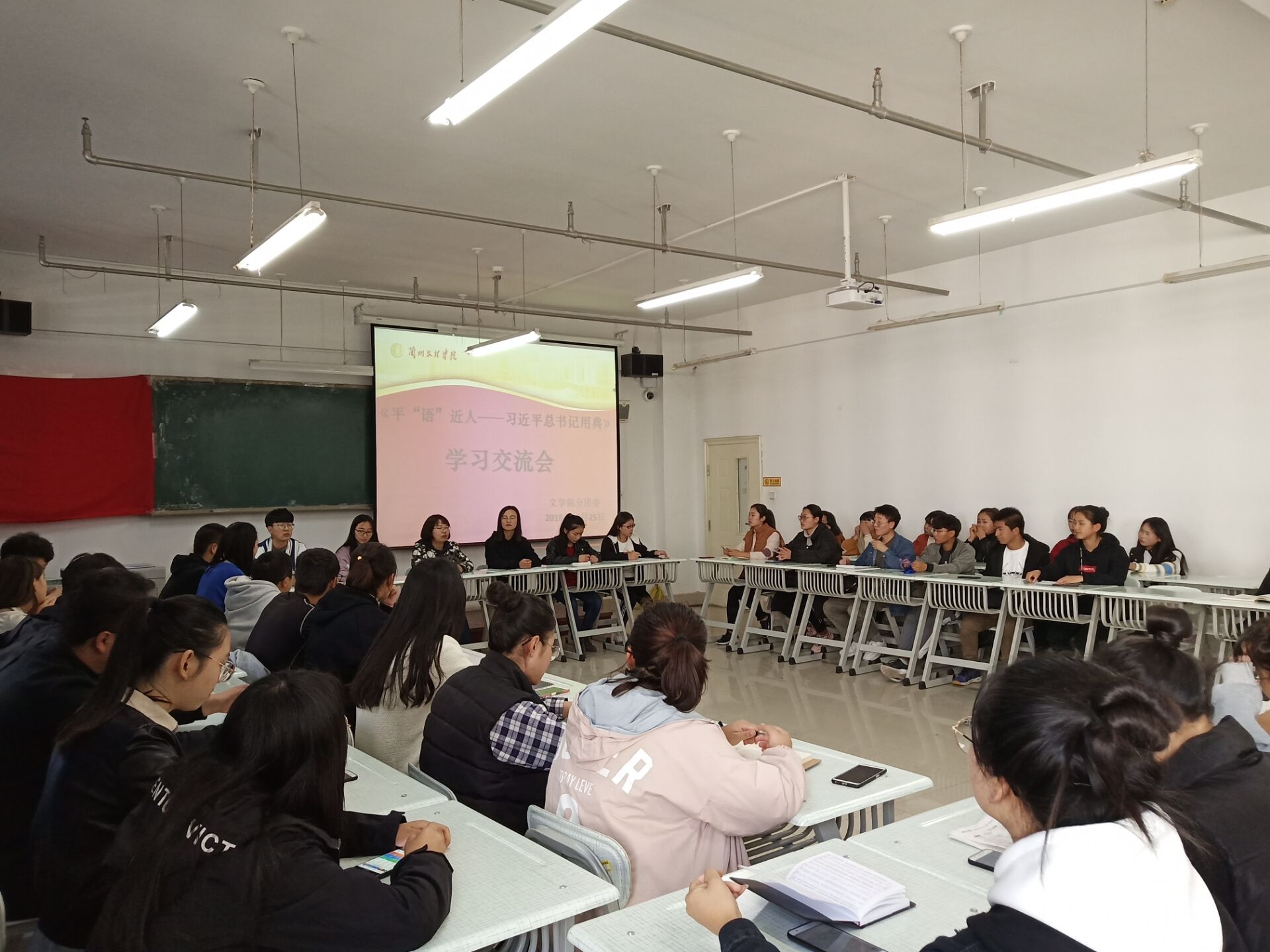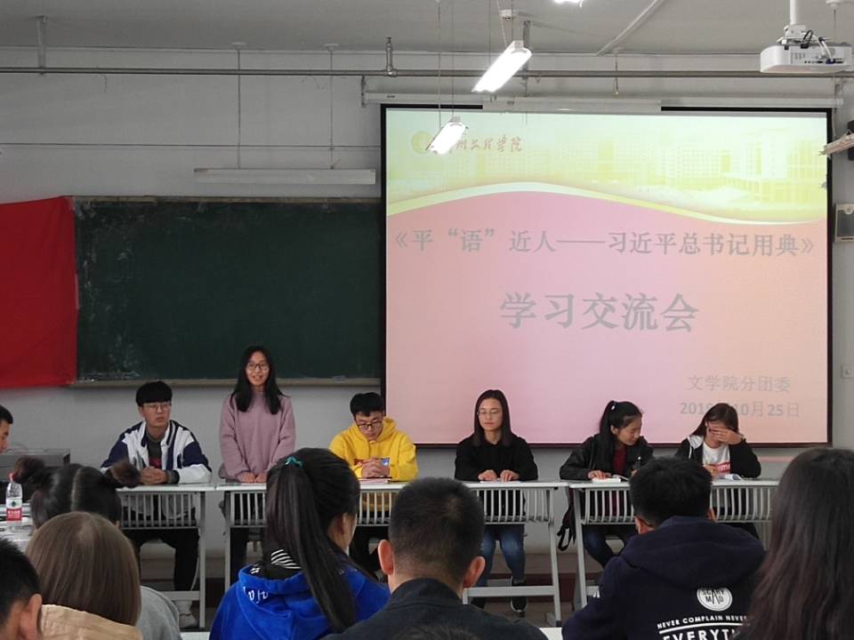 为了鼓励文理学子从习近平总书记的一言一语中汲取精神力量以增强信心,将学习作为责任和终身追求,以提高自我的知识素养和精神素养,坚定自己的理想信念。2018年10月29日13点,yl9193永利集团分团委组织了“平语近人——习近平总书记用典”座谈会,参加此次活动的有yl9193永利集团辅导员奂菲老师,yl9193永利集团学生会各部门部长以及各班级班委、团支书和2018年上半年入党积极分子。 会议开始,由yl9193永利集团辅导员奂菲老师讲话,她提出我们应该跟紧习近平总书记的步伐,认真学习平“语”近人理念,紧接着组织大家观看《平“语”近人》第八集“腹有诗书气自华”。影片从“学如弓弩,才如箭镞”这个层面解读习近平总书记关于“劝学”的论述,将国学经典与执政兴邦融为一体,让我们深感震撼和自豪。并通过习近平总书记在梁家村下乡时期开设扫盲班和送书给退休干部王宪平的事例来激励各位学子,使各位学子牢记,青年是学习的黄金时期,树立梦想应该从学习开始。最后,进入自由发言阶段,由在场的学生会干部及各班班委探讨对平“语”近人的理解,很好的升华了活动氛围,也坚定了各位学子的理想信念。天下兴旺,匹夫有责。作为当代大学生,我们有责任为我们的社会贡献自己的力量,途径就是读书,让阅读提升我们的思维,开拓我们的视野。 作为新时代的中国青年的我们,只有把自身的前途命运同国家和民族的前途命运紧紧联系在一起,努力为共同理想和目标而团结奋斗,中华民族伟大复兴才会在我们的奋斗中梦想成真。希望通过此次平“语”近人活动,能够努力营造yl9193永利集团的学习氛围,推动平“语”近人走进校园走进班级,走进每一位文理学子的心里,能够如习近平总书记所讲:“有志向、有梦想、爱学习、爱劳动、爱祖国。”