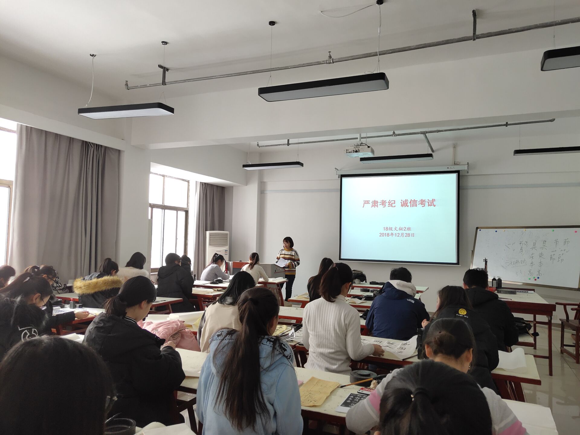 活动开展期间,各个班级积极响应号召,在“诚信考试 杜绝作弊”主题班会上,有老师表示,诚信是做人的根本,要学会做人,不给大学生涯留下遗憾。使同学明确懂得“诚信”的含义,理解“诚信”对学生自身发展和为人处世的重要意义,希望同学们继续大力开展有目标、有计划的学习。告诫同学们在接下来的时间里要认真复习,积极备考,树诚信、扬正气,用端正的态度对待每一场考试。同学们踊跃发言,分享关于诚信的感悟与理解,内容涉及到学习、工作、生活等诸多方面,气氛积极活跃。此外,学生会还组织开展了诚信考试展板签名活动,同学们在便签上写下诚信考试的承诺并署名,张贴在展板上。