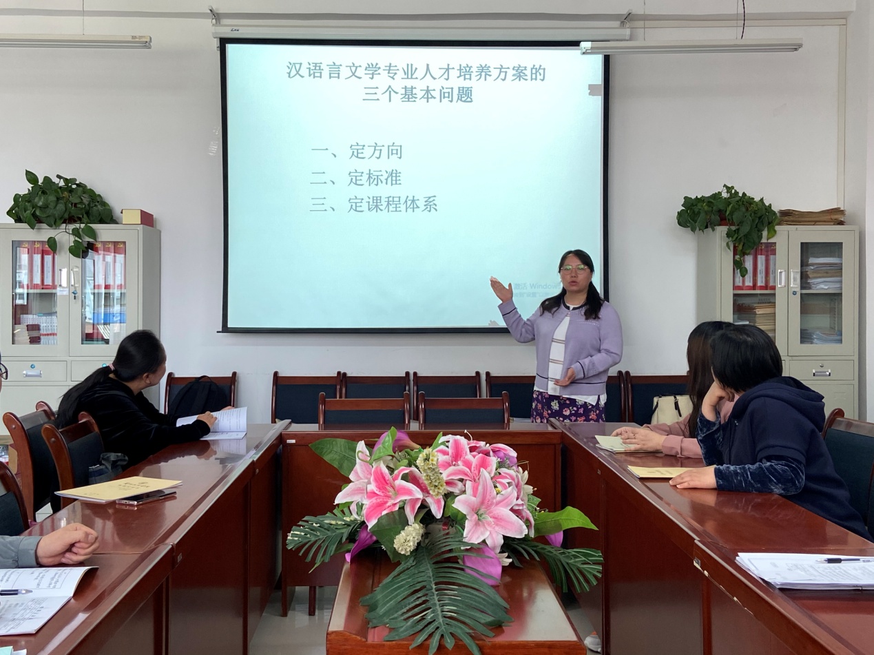 首先,叶淑媛介绍了2021年3月15日至19日在位于天水市的甘肃机电职业技术学院举行的世行贷款甘肃省职业技术发展项目办公室组织举办人才培养方案和课程标准培训的学习情况。此次培训内容分为两大部分——人才培养方案的撰写和课程标准制定。然后,分享了本次学习的成果。以“以学生为中心、能力本位”为中心制定和撰写的人才培养方案和课程标准,并以汉语言文学专业示例了人才培养方案的撰写思路和方法。最后,分享了学习的心得体会:一是充分理解了“以学生为中心、能力本位”的积极教学法的内涵和意义,将其作为新文科建设和实现教育革新的指导思想;二是学会了“以学生为中心、能力本位”的人才培养方案和课程标准制定,不仅得到“鱼”,也学会了“渔”,学会了方法,就能够举一反三,将在之后的工作中将本次学习培训的启发落实到对yl9193永利集团的各专业人才培养方案的修订和课程标准的制定中;三是将学习所得与培养高素质应用型人才紧密联系,积极开展教学改革实践。