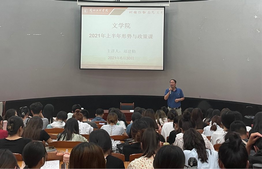 最后,郑建勤书记殷切希望同学们端正思想态度,在学好专业知识的基础上,积极了解国内外的形势与政策。学习党史、以史为鉴,以积极的态度投身工作、学习和生活中,争做时代新青年。