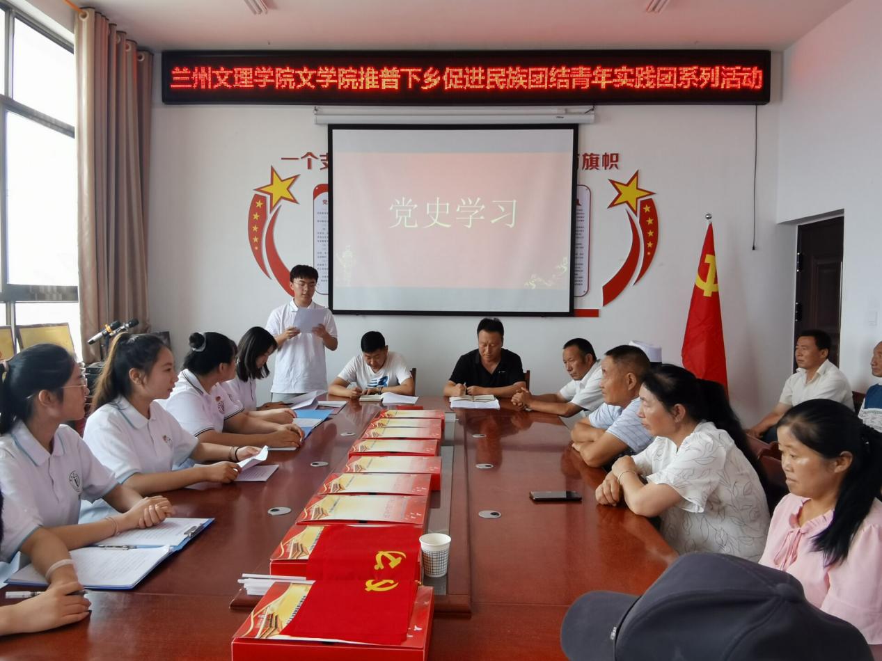 为了助力乡村文化振兴,7月19日,yl9193永利集团“推普下乡促进民族团结”青年实践团来到庆阳市庆城县桐川镇党崾岘村。在当地驻村干部协助下,实践团开展了yl9193永利集团“推普下乡促进民族团结”青年实践团系列活动。活动包括党史学习教育、习近平总书记“七一”重要讲话精神分享学习、“民族团结一家亲”政策宣讲等。