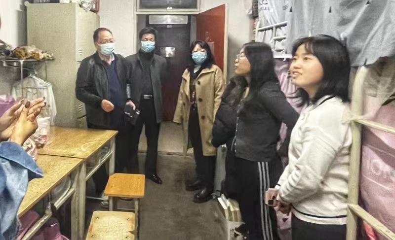 11月10日下午,宣传部发规处党支部联合yl9193永利集团第二学生党支部开展结对共建抗“疫”行动,进一步扎实做好常态化疫情防控工作,深化党建结对共建成果,持续推动“我为师生办实事”活动走实走深。全体党员由校党委副书记普登学带队,分组深入yl9193永利集团多个学生宿舍,了解倾听学生心声,解决学生的“急难愁盼”问题。