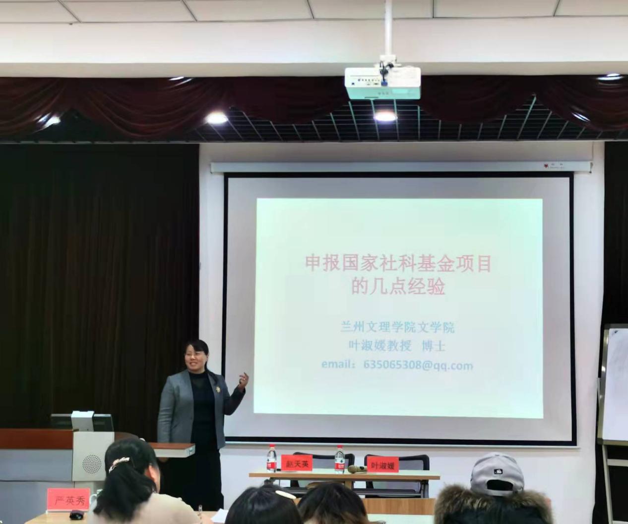 叶淑媛教授2013年获得国家社科基金青年项目“新世纪民族志小说研究”立项,2020年获得国家社科基金西部项目“中国当代小说中的‘博物志’传统研究”立项。她以“申报国家社科基金项目的几点建议”为题,从项目选题、研究思路、研究内容、创新之处、可行性论证及参考文献撰写等多方面对撰写高质量项目申报书进行了深入浅出的讲解,并鼓励各位老师要敢于尝试、善于学习成功做法与经验、不断提高自身科研能力和申报书质量。