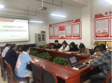为切实加强学风建设,进一步提升团学工作质量,5月17日下午学院召开了团学工作例会暨近期重点活动交流会。党总支书记郑建勤、学工办主任兼分团委书记孟煜杰、组织员昂增多杰、辅导员贾娜以及学生会主席团成员和分团委副书记参加了会议。