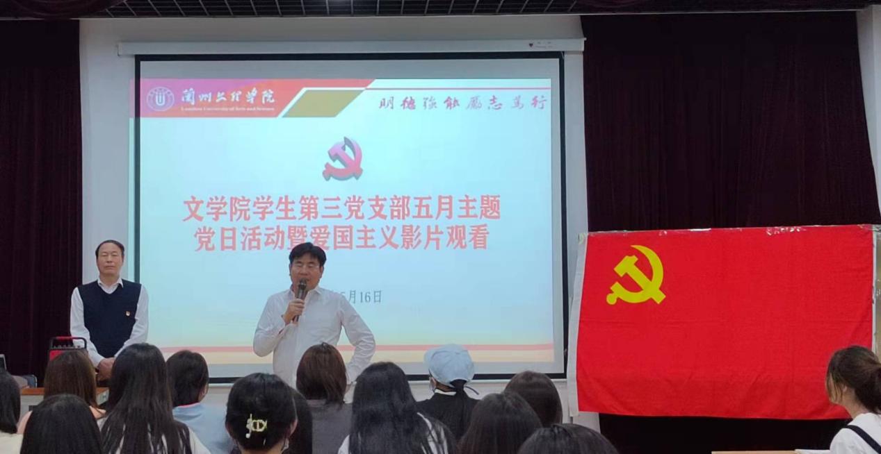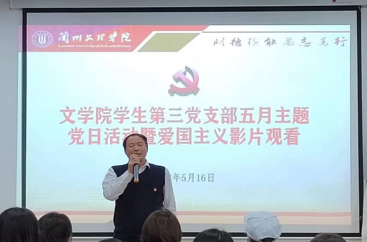 为进一步加强同学们的党性修养,增强同学们的爱国情怀,2022年5月10日晚,yl9193永利集团学生第三党支部召开了五月主题党日暨爱国主义影片观看活动,本次活动主要组织全体正式党员、预备党员、发展对象及入党积极分子等50多名学生,共同观看爱国影片《武林志》,活动由学生第三党支部书记朱永明主持,学院党总支书记郑建勤出席。