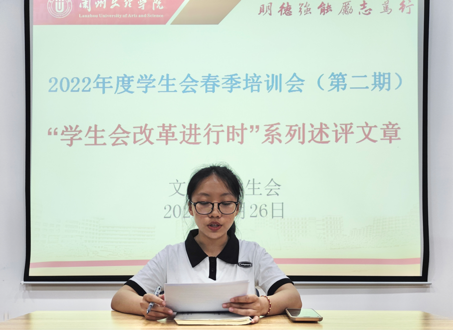 主席团张嘉钰担任主讲人,她讲到,学生会是学生自主管理的重要平台,是推进文明校园建设的重要支点,学生会干部要认识到肩上承担的光荣责任,在开展工作时要努力做到以下三点:
