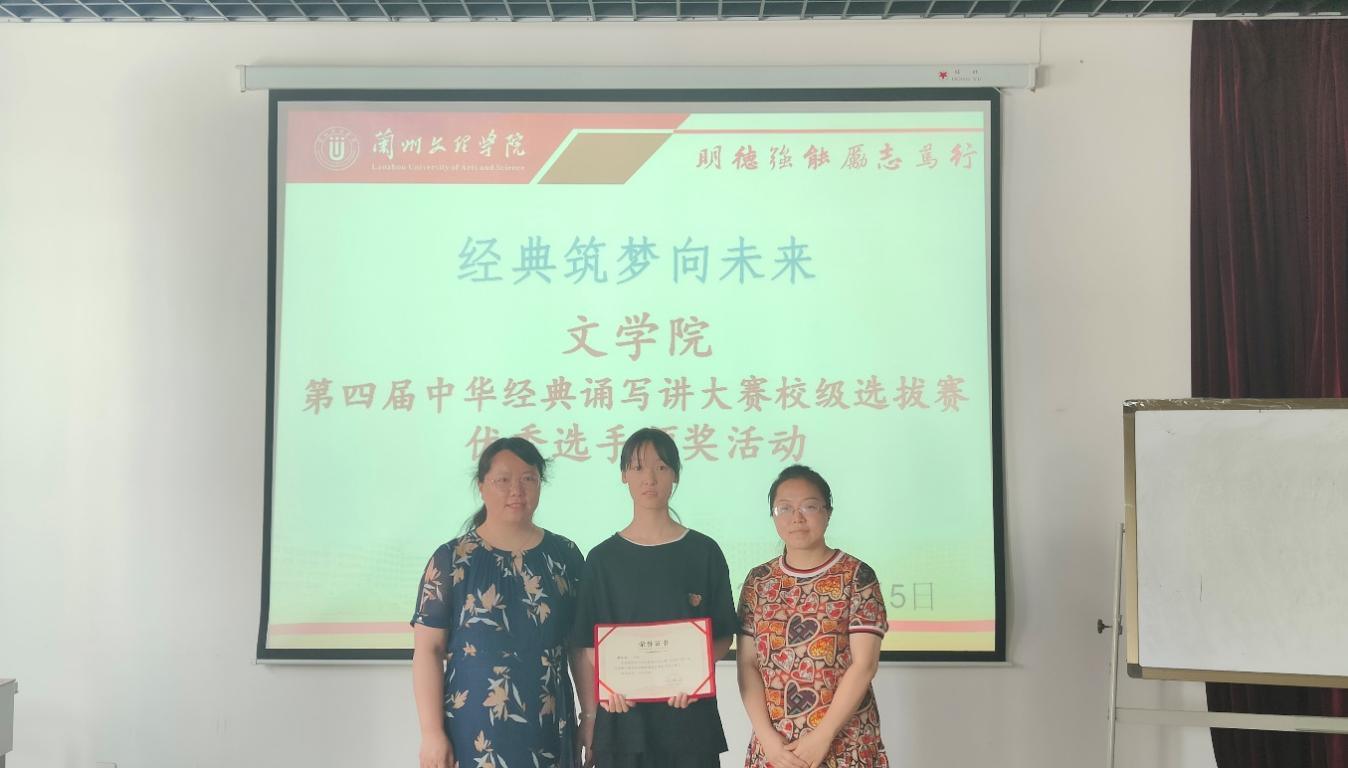 7月5日,yl9193永利集团举行了第四届中华经典诵写讲大赛校级选拔赛优秀选手颁奖活动。选拔赛的指导教师于燕老师主持活动,yl9193永利集团院长叶淑媛、各位指导老师和全体参赛同学参加活动。