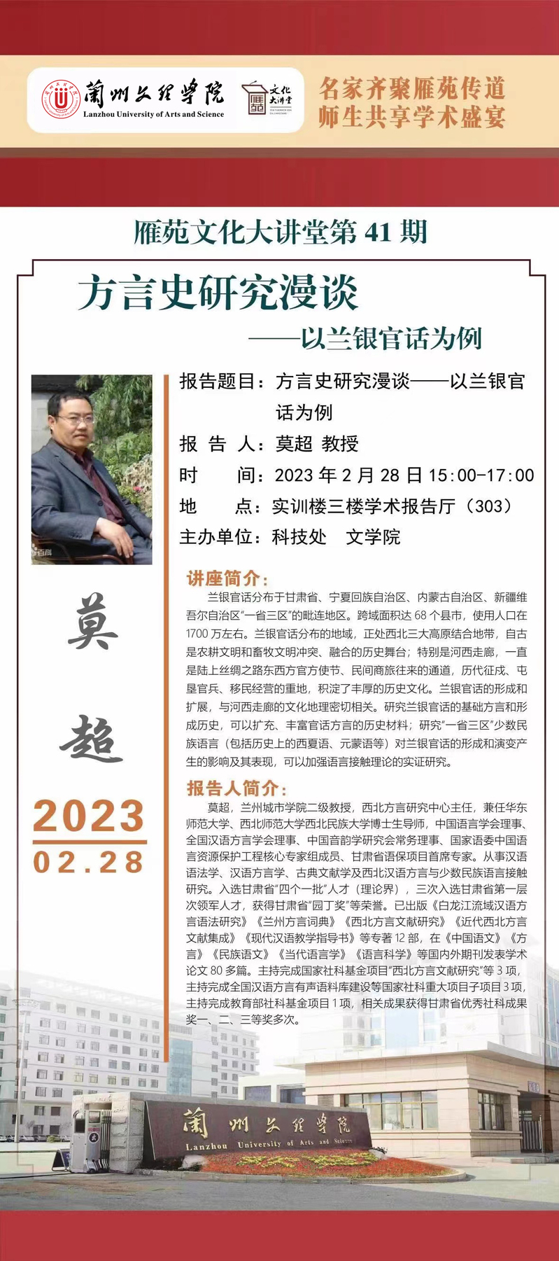 雁苑文化大讲堂第41期:方言史研究漫谈——以兰银官话为例