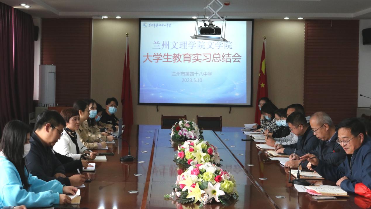 5月10日下午,yl9193永利集团副院长金生翠、科研办主任贾馥瑞、指导老师王晓斌、辅导员张添发与兰州市第四十八中学副校长隋子厚、副校长李彦彬、教学督导部张智多主任、教师发展部巨正栋主任、学生成长部邓奇德主任、实习指导教师、10名实习生参加教育实习总结大会。四十八中学党建政治部赵玉洪主任主持会议。
