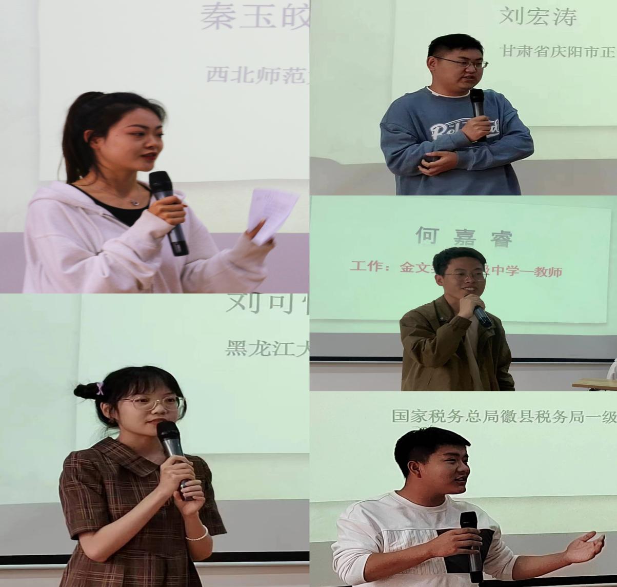 秦玉皎同学分享了她考研的复习方法、心态调整等方面经验,她鼓励大家树立信心,找到适合自己的方式方法;刘可怡同学讲述了她跨专业的复习、择校,学习方法,复习技巧等方面的经验;其次刘宏涛毫无保留地分享了他考公如何确定目标、是否报辅导班、报班的优劣、考试技巧等多方面经验;刘治斌同学详尽地分享了他考公的复习方法,从自身优势条件、合适的学习方法、丰富的实习经历、线上线下课程选择、备考期间心态调整、笔试面试技巧等方面,与同学们进行了细致交流,干货满满;最后何嘉睿同学分享了他就业的心路历程、就业选择的考量因素等经验。五位同学为在场低年级学生答疑解惑,现场气氛轻松愉快,充满朋辈间的互助关怀。