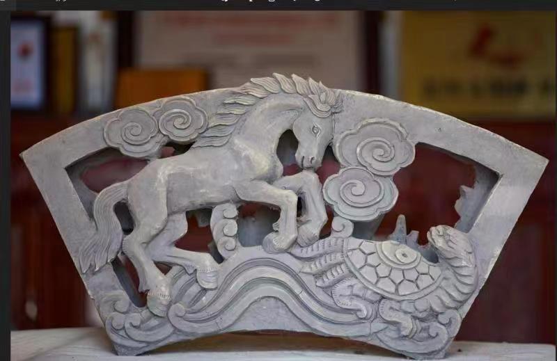 在瓦房村参观通渭脊兽、砖雕技艺,脊兽是中国传统建筑上的重要部件,在建筑装饰中有特殊的文化含义,传承人李忠贤自少年时期跟随家人学习这门技艺,现场看到了大量的作品,技艺纯熟,各种动物形象栩栩如生,具有非常鲜明的中国传统文化特色。
