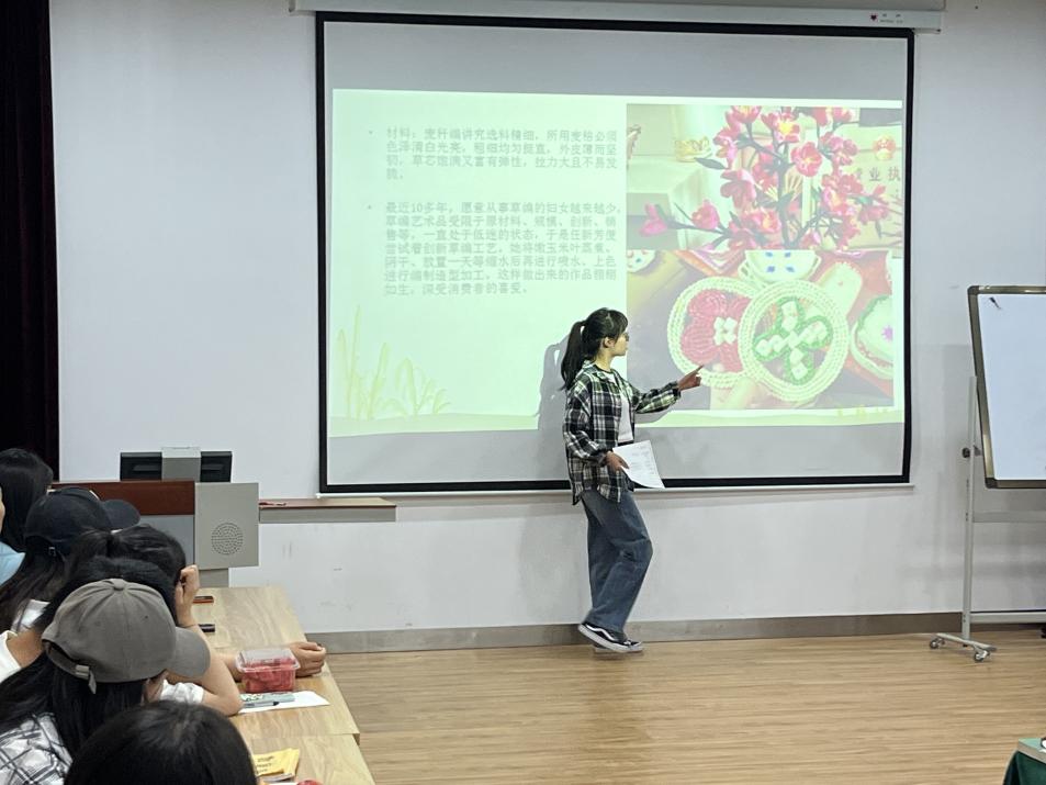 梁文玉同学分享了对“天水秦安麦秆编技艺”的田野调研成果,从麦秆编非遗传承人任新芳女士的从业经历,讲到麦秆编的独特性创新性助农性,并对麦秆编技艺的保护现状进行了分析。她提到,探索和思考非遗的创新之路,将会贯穿于非遗保护专业今后的学习过程中。