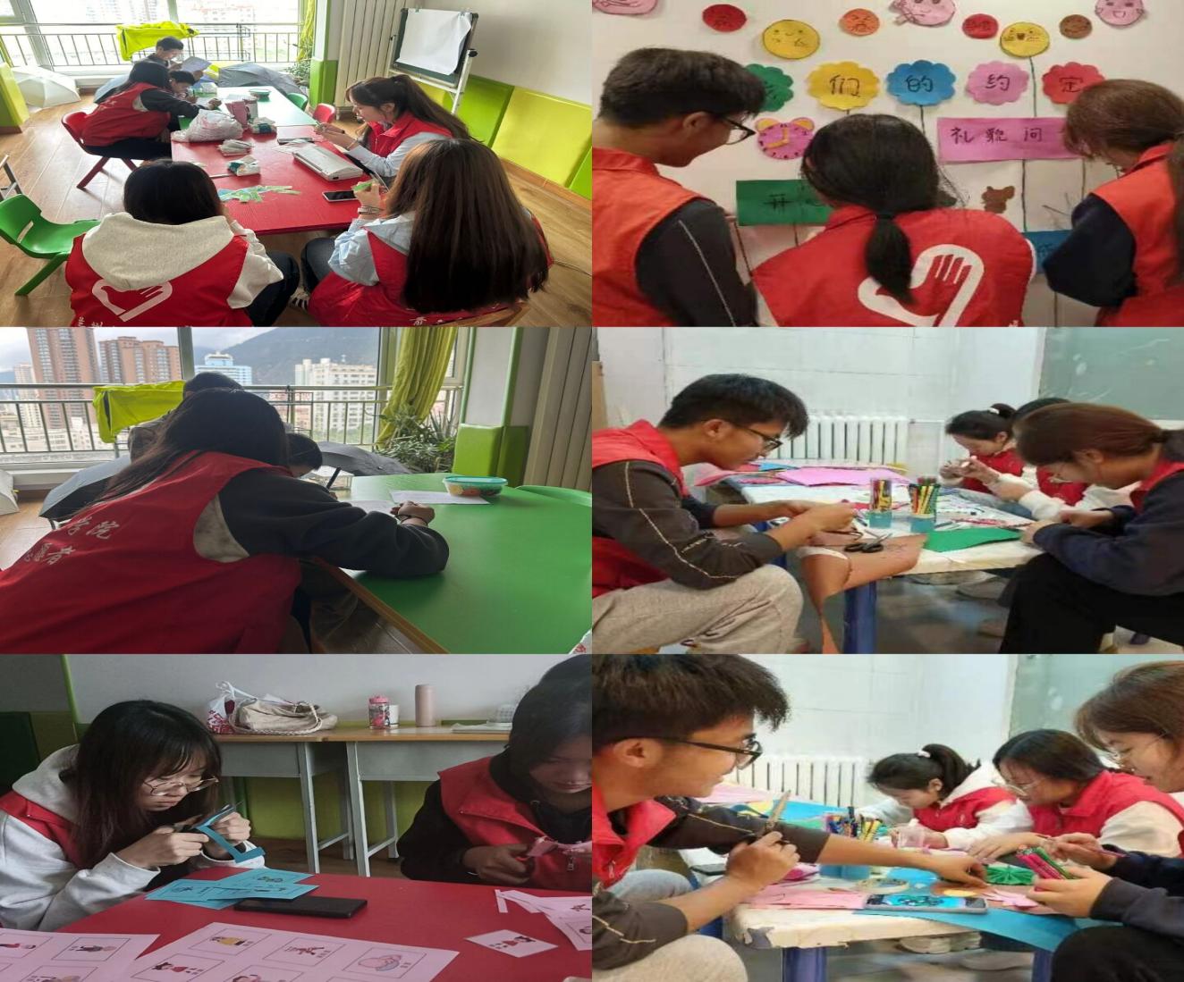 10月12日下午,志愿者赴“金宝贝”特殊儿童机构开展活动。活动期间,志愿者积极配合机构的各项工作,为孩子们准备课堂教具,齐心协力为孩子们提供更优质的课堂用品。