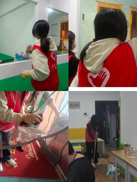 新羽儿童康复中心,志愿者进行擦玻璃、扫地、拖地、窗户贴膜等一系列卫生大扫除活动,希望通过微薄之力改善孩子们的居住环境。