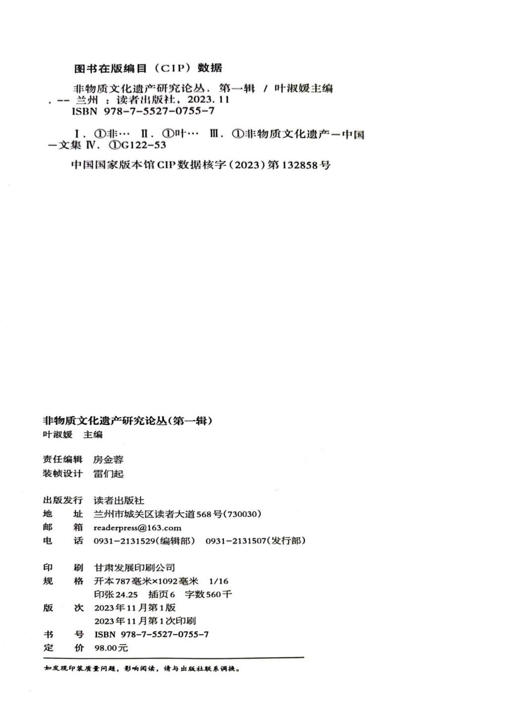 近日,由永利官网和甘肃省文旅厅合办的《非物质文化遗产研究论丛》第一辑由读者出版社正式出版。