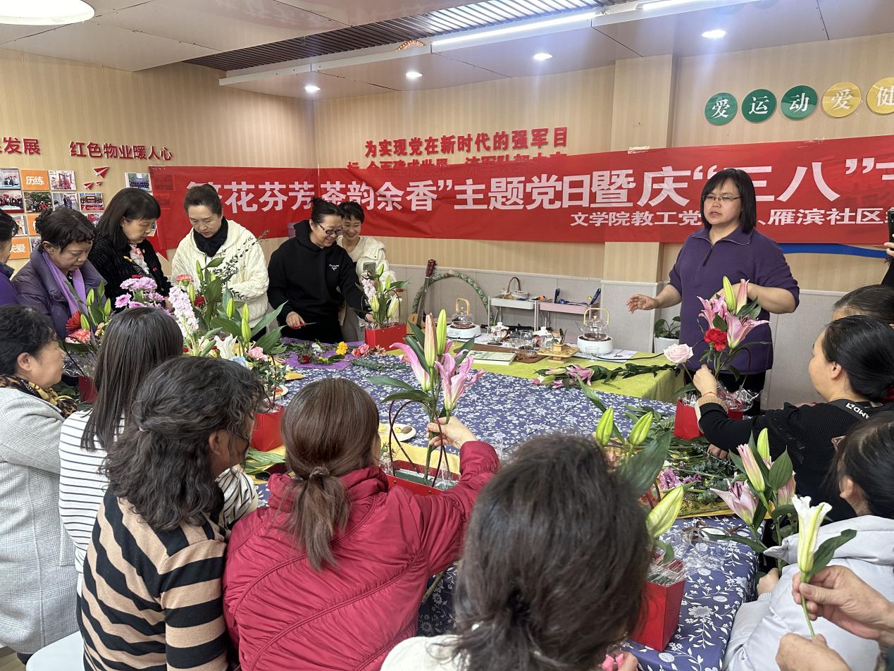在“三八”国际劳动妇女节到来之际,为丰富广大女性党员群众的文化生活,展现妇女同志对 美好生活的向往,进一步增强基层党组织凝聚力,yl9193永利集团教工党支部与雁滨社区组织开展了“繁华芬芳,茶韵余香”为主题的主题党日活动。