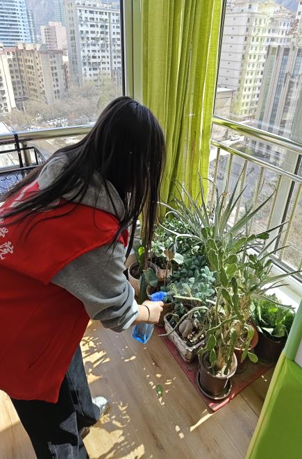 图为志愿者做康复运动和拍摄视频的场景