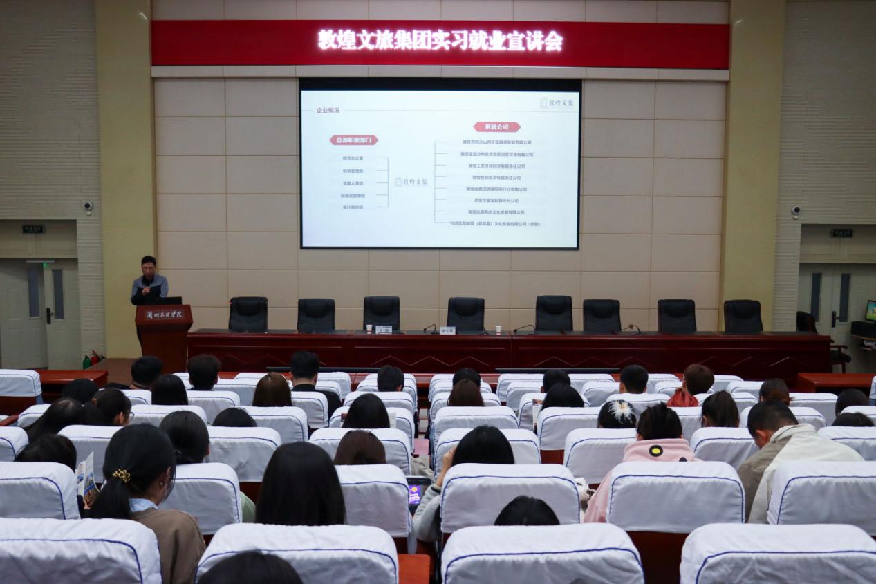 为进一步加强校企合作,拓展学生的就业渠道,3月28日下午,yl9193永利集团邀请敦煌文旅集团党建人事部总经理王强为21级戏剧影视文学、文化产业管理专业学生作实习就业宣讲。