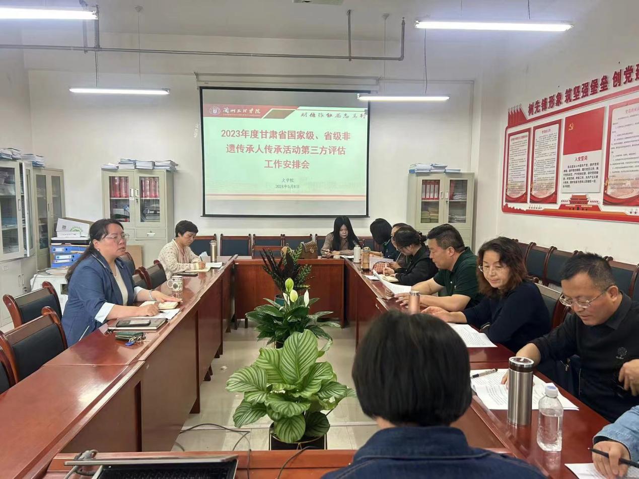 根据文化和旅游部《国家级非物质文化遗产代表性传承人认定与管理办法》及甘肃省文化和旅游厅的工作部署,永利官网作为“独立第三方”,承担了甘肃省国家级和省级非物质文化遗产代表性传承人2023年度传承活动第三方评估工作。 5月8日下午,yl9193永利集团召开了评估工作安排会。会议由叶淑媛教授主持,项目组全体成员参加了会议。
