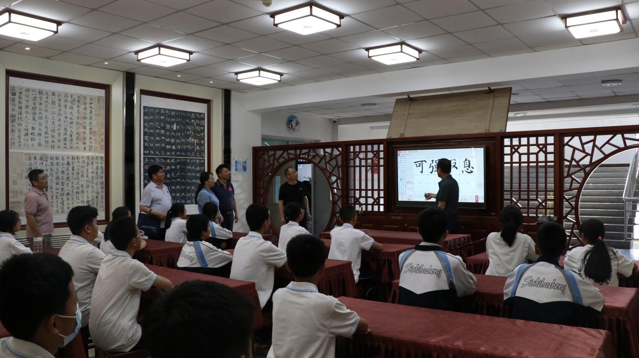调研会结束,叶淑媛一行在兰州市第四十八中学校长杨雪枫等人的陪同下参观校园活动、文化建设、特色课程等内容。