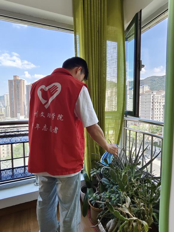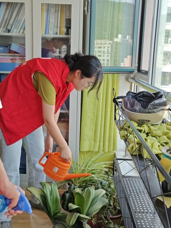 图为志愿者浇花的场景