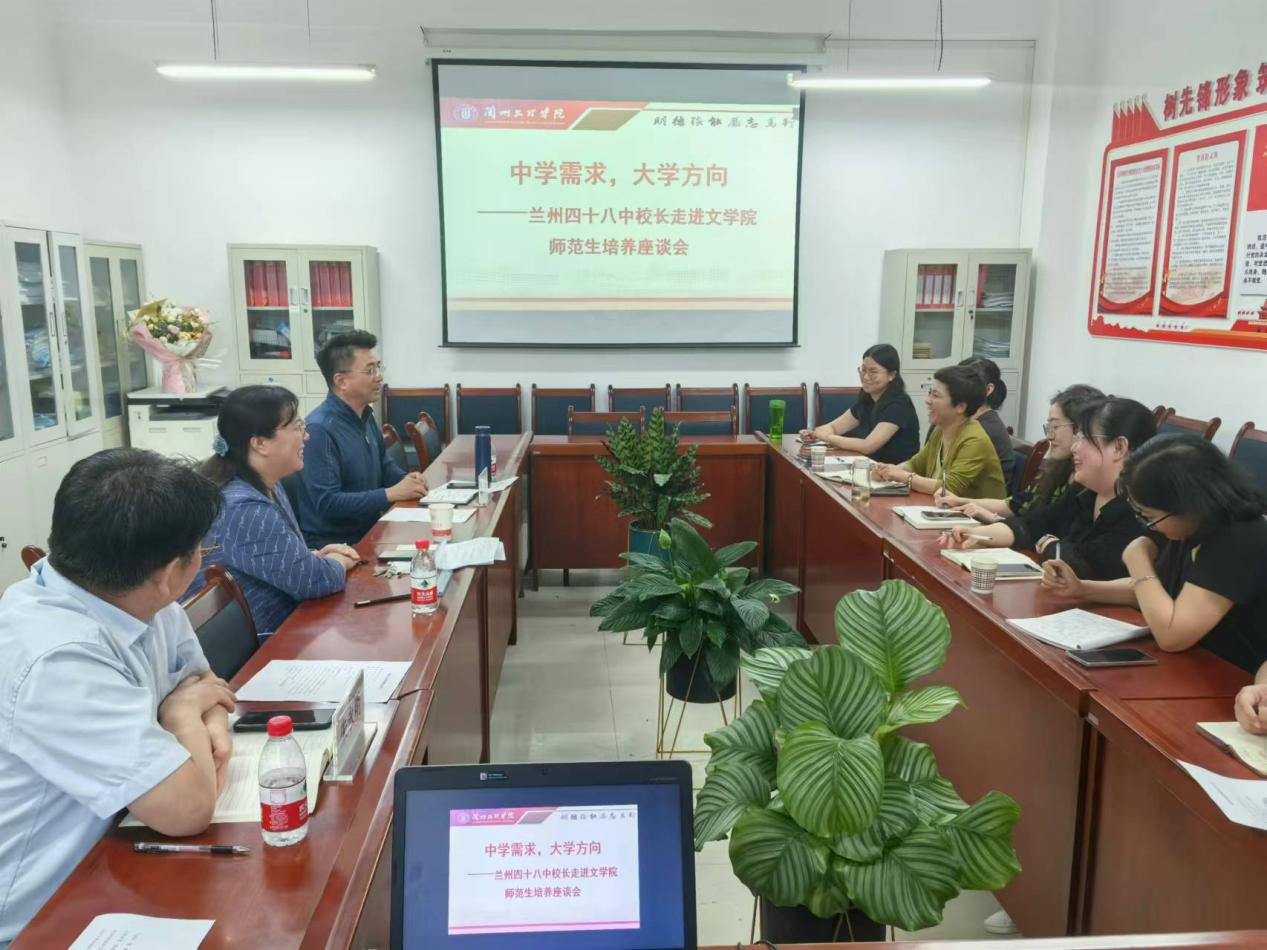 9月19日下午,yl9193永利集团举办了“中学需求,大学方向:兰州市第四十八中学党委书记、校长杨雪枫走进师范生培养座谈会”。座谈会由yl9193永利集团院长叶淑媛主持,领导班子成员及汉语言文学专业教师代表参加。