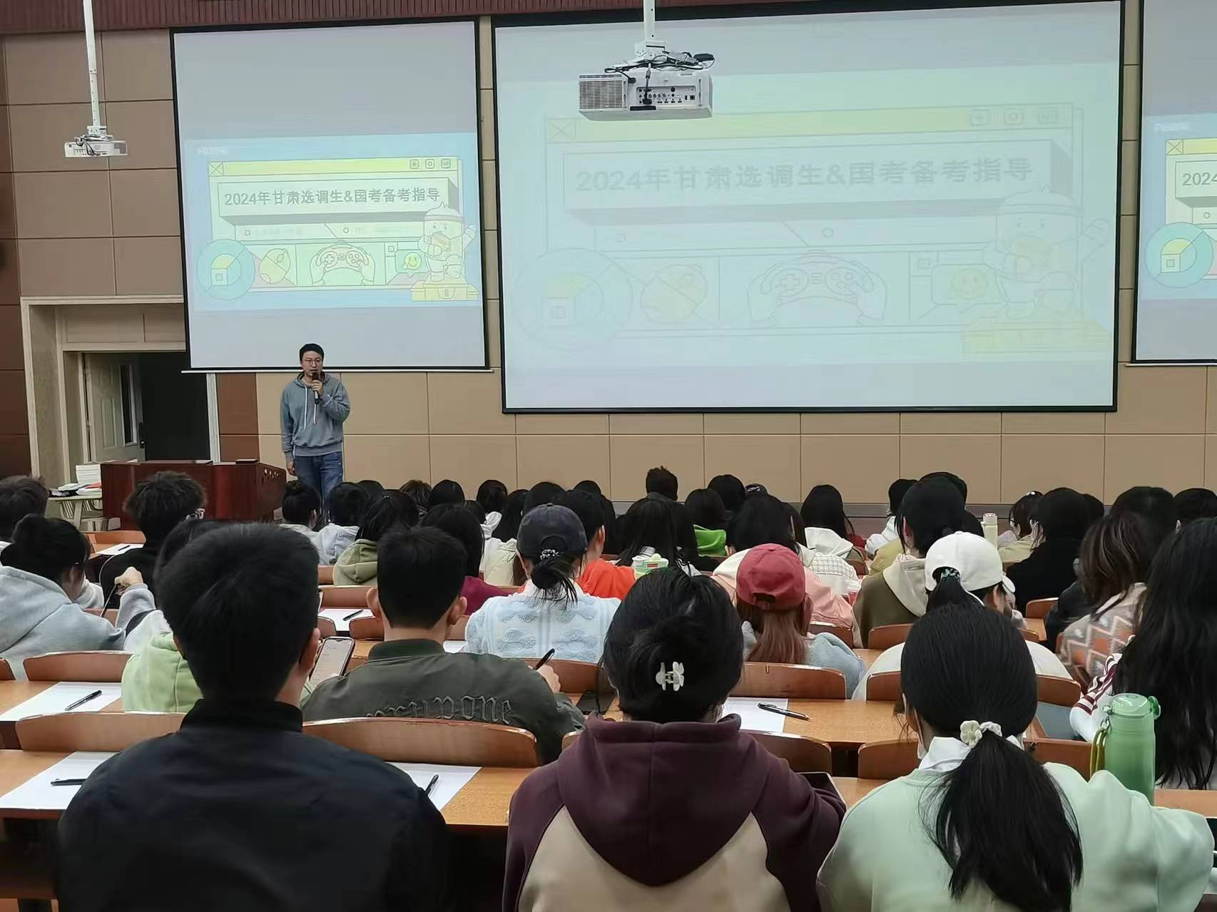 10月11日晚,yl9193永利集团特邀粉笔教育机构于致远楼205为学院2025届毕业生进行甘肃省选调生与国考备考指导。本次指导旨在解读报名流程、分析考情、交流分享高效备考方法。