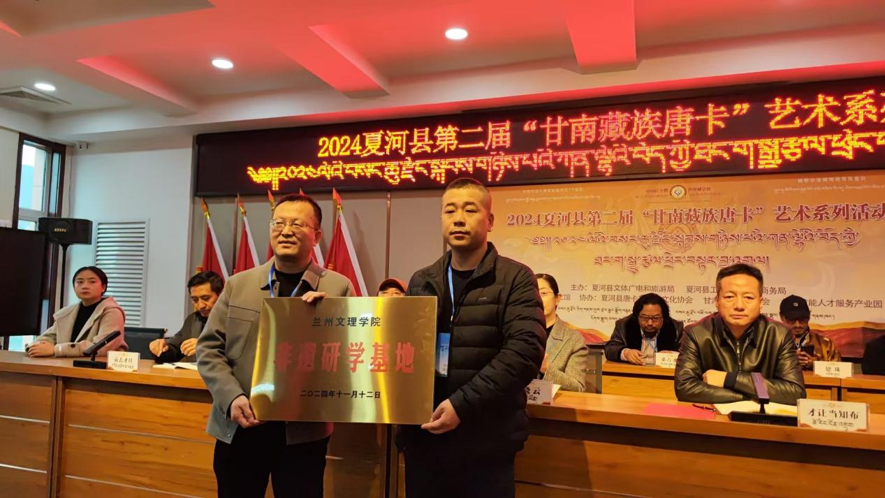 甘肃省甘南藏族自治州夏河县拥有国家级非物质文化遗产代表性项目甘南藏族唐卡、南木特藏戏,以及丰富多彩的其他各类非遗代表性项目和资源。我校yl9193永利集团院长叶淑媛、非遗研究院副院长刘玉忠等多次到夏河县考察,并与夏河县文化旅游局、夏河县文化馆达成合作共建我校非物质文化遗产保护专业、服务和提升夏河非遗系统性保护和文旅高质量发展的合作协议。本次挂牌“非遗研学基地”为双方合作发展打造了一个非遗人才培养和研究传承的平台。