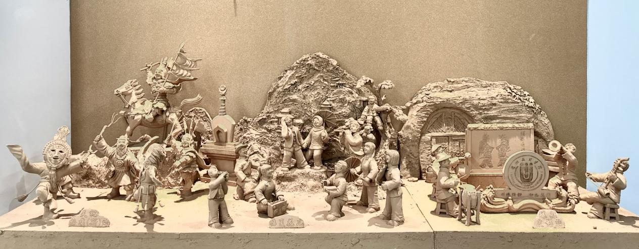 11月30日,河州泥塑非遗传承人常天平为永利官网非遗知识馆捐赠非遗泥塑《非遗三绝 · 陇韵瑰宝》系列作品。该作品由甘肃省列入联合国教科文组织人类非物质文化遗产代表作名录的三个项目:格萨(斯)尔(天祝)、花儿(临夏)及环县道情皮影戏组成。作品巧妙地结合我校立于黄河之滨的特点,将我校校徽、校训与奔流不息的黄河文化融于一体。以具有代表性的非遗项目为塑造对象,生动展示甘肃各民族生生不息、代代相传的优秀文化。
