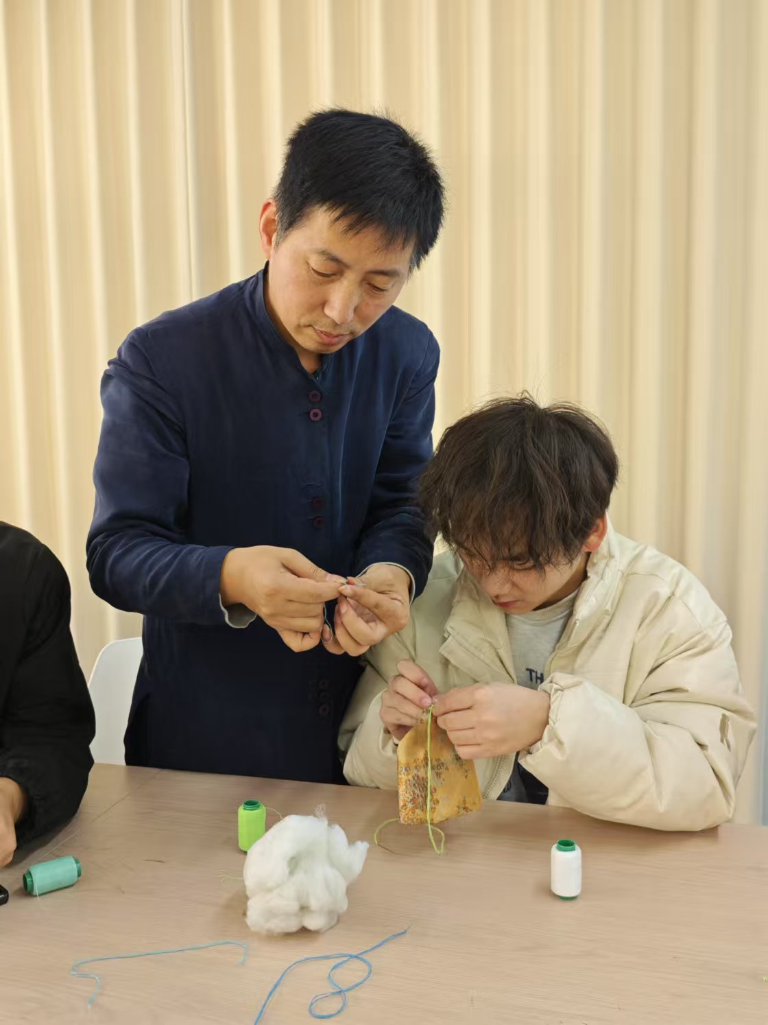 授课现场,刘云帆耐心给予专业指导,从基础针法演示,到复杂图案构作,以针为匙,带领学生们共同开启刺绣文化宝库之门,在穿针引线间深挖刺绣背后深厚的人文底蕴。学生们被刺绣技艺深深吸引,在刘云帆的指导下,做出了各自的刺绣作品。实训课结束后学生们表示收获良多,希望继续学习更多刺绣技艺。