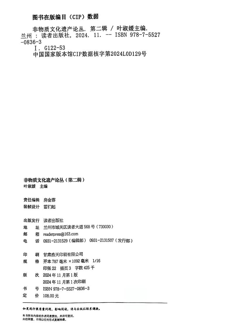 近日,由永利官网与甘肃省文旅厅联合主办的《非物质文化遗产论丛》(第二辑)由读者出版社正式出版发行。