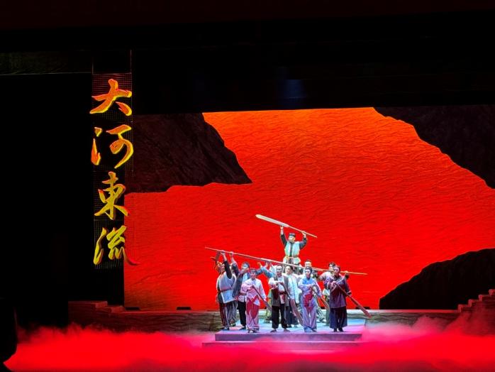 《大河东流》为国家艺术基金资助原创剧目,以抗战时期“羊皮筏子赛军舰”的故事为原型,演绎了兰州“筏客子”在民族存亡的关键时期,挺身而出,用羊皮筏子运送抗战物资的感人故事,展现了黄河儿女的家国情怀和英雄气概。该剧是甘肃省陇剧院推出的“黄河三部曲”系列的第二部,剧目在保留陇剧传统风格的基础上进行了创新,对陇剧的传承发展作出了有益探索。