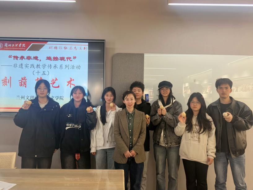 本次传承实践课程分为理论与实践两部分。阮熙越以“葫芦虽小乾坤大”为题,系统讲解了葫芦的生物特性、历史文化脉络、传统工艺技法及现代创新应用。通过实物、图片及视频演示,详细介绍了阮氏刻葫芦“以针代笔、以葫芦为纸”的独特技艺,并重点分析了非遗手工艺在当代文创产品开发中的守正创新路径。