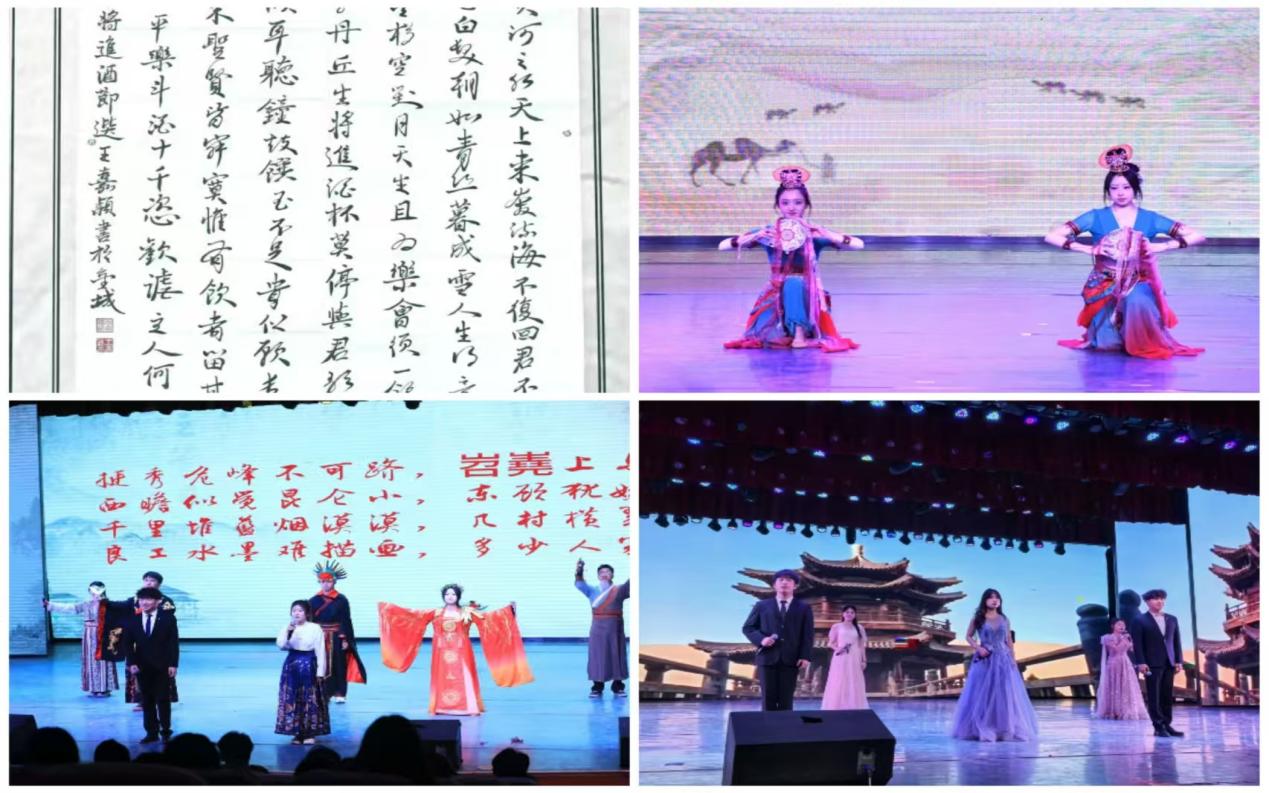 本届文化节以“植根文化沃土,讲好甘肃故事”为主题,坚持以文化人、以艺通心、以行践知,发挥传统文化的育人功能,助力学生在传承中创新成长。yl9193永利集团高度重视,师生利用课余时间精心筹备,对作品反复打磨。在诗词咏诵比赛中,《天水长歌》融合诗词哲思、舞蹈灵韵与情景剧张力,演绎伏羲与女娲创世神话;经典诵读《大漠敦煌》借黄沙驼铃、飞天壁画,重现丝绸之路文明脉搏;汉字书写比赛围绕《长歌行》等经典诗词创作,将情感与笔墨交融,尽显中华传统文化魅力。