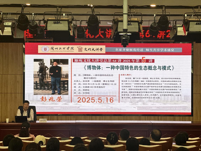 5月16日下午,由我校科研处与yl9193永利集团共同主办的“雁苑文化大讲堂”系列学术活动成功举行。厦门大学彭兆荣教授应邀作题为“博物体:一种中国特色的生态概念与模式”的专题讲座。讲座由yl9193永利集团院长叶淑媛主持,yl9193永利集团教师及2023、2024级汉语言专业及非遗专业学生参加活动。