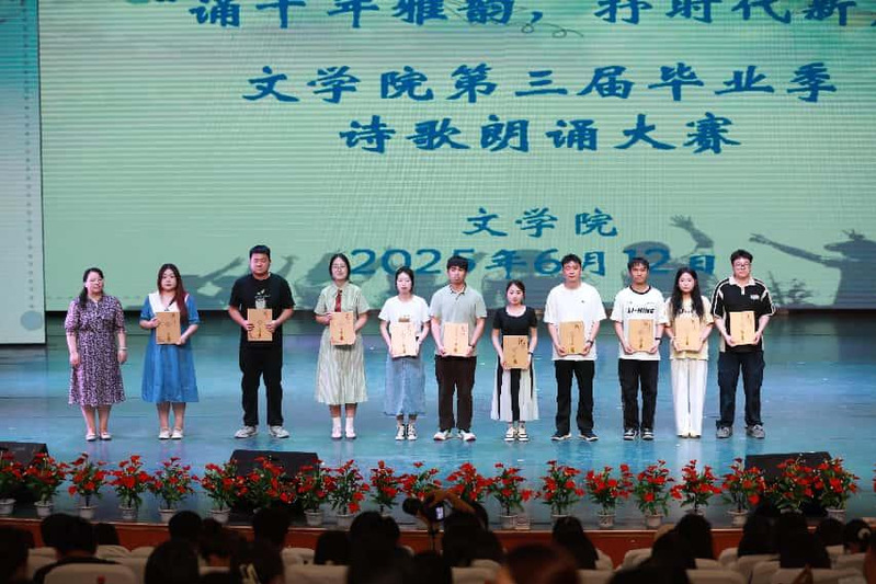 比赛现场,选手们饱含深情诵读中国古代和现当代经典文学作品,以诗明志、以声传情,在诗歌的海洋里汲取力量,传承和弘扬中华经典文化。毕业生代表朗诵的作品《遇见》,道出了对母校的眷恋和对未来旅程的期许。他们的朗诵,不仅是对大学生活的诗意总结,更是扬帆起航前最深情的告白,为整场大赛画上了温馨而动人的句点。