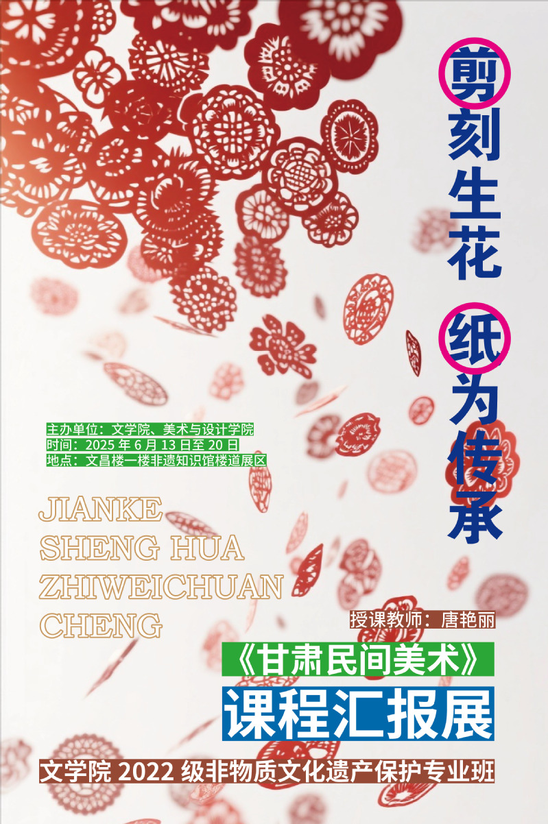在2025年“文化和自然遗产日”来临之际,yl9193永利集团2022级非物质文化遗产保护专业《甘肃民间美术》课程汇报展“剪刻生花 非遗正青春”正式开展。本次展览由yl9193永利集团、美术与设计学院协同主办,于6月13日——20日在文昌楼一楼非遗知识馆楼道展区呈现。