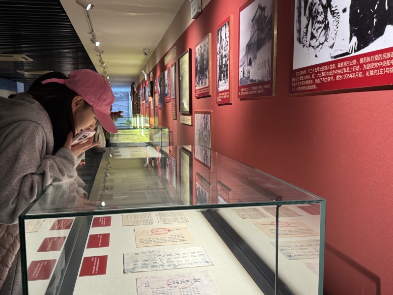 在展区内,党员们驻足于珍贵的历史文献图片前,认真聆听讲解,深入了解红军长征在甘肃的光辉历程。大家通过重温那段波澜壮阔的历史,深刻感悟长征精神的时代内涵,进一步坚定了理想信念,凝聚了奋进力量。在陈列着珍贵历史文献的展柜前,大家或俯身细看、或认真记录,深入探寻红军长征在甘肃的历史细节。泛黄的文献、斑驳的字迹,无声地诉说着革命先辈的奋斗故事。党员师生们在参观中重温红色记忆,深刻感悟革命精神。